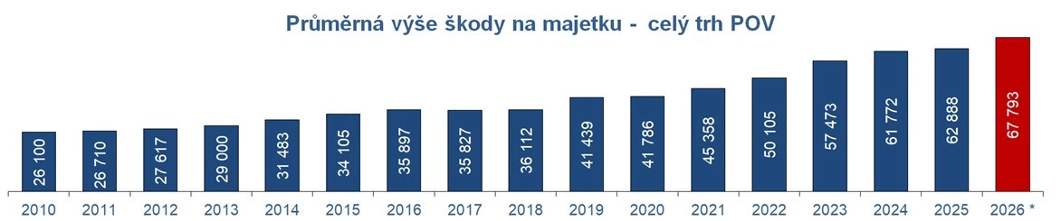 Odborníci z ČKP očekávají, že průměrná majetková škoda dosáhne v roce 2026 téměř 68 000 Kč, což by znamenalo zdvojnásobení oproti hodnotám před dvanácti lety.